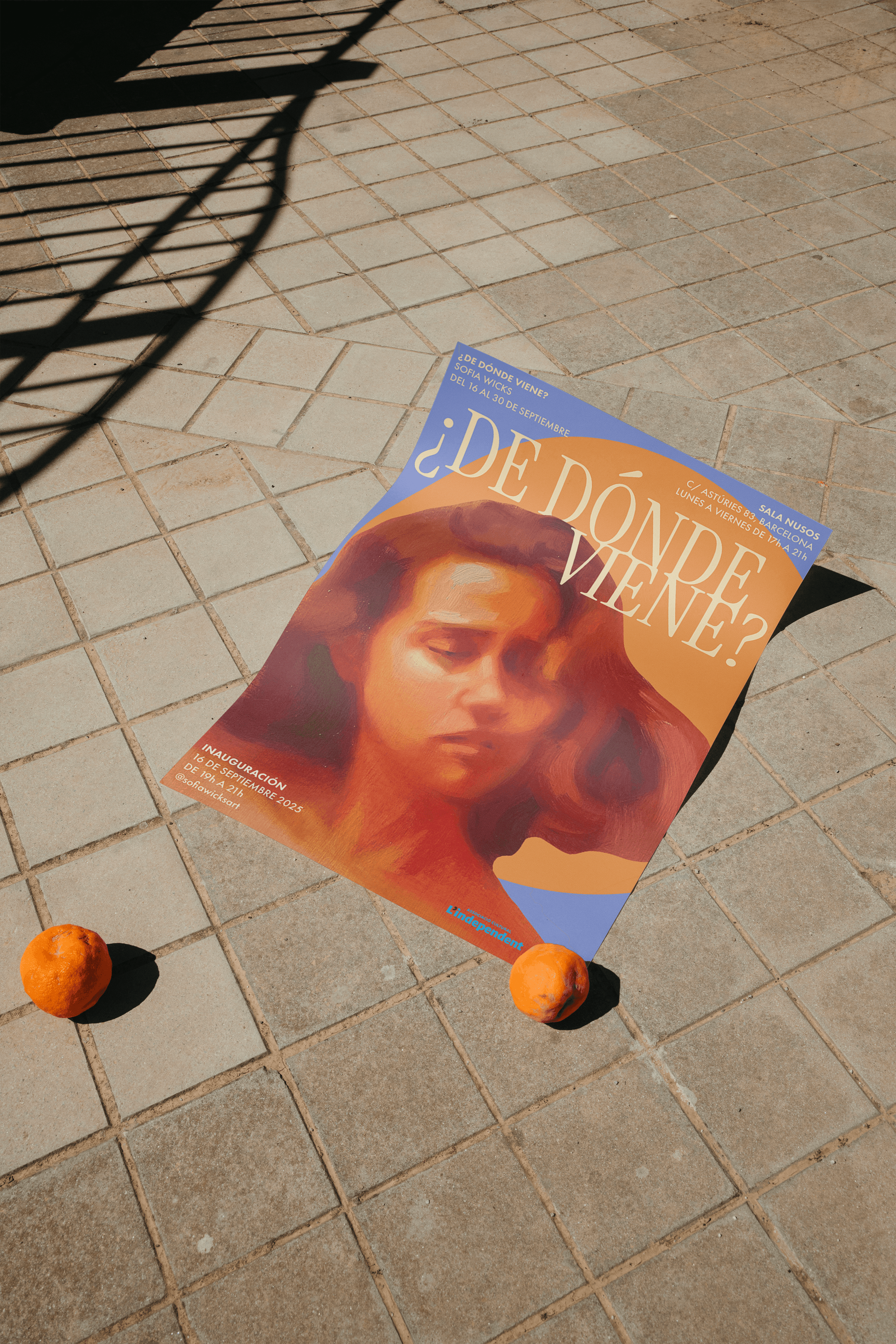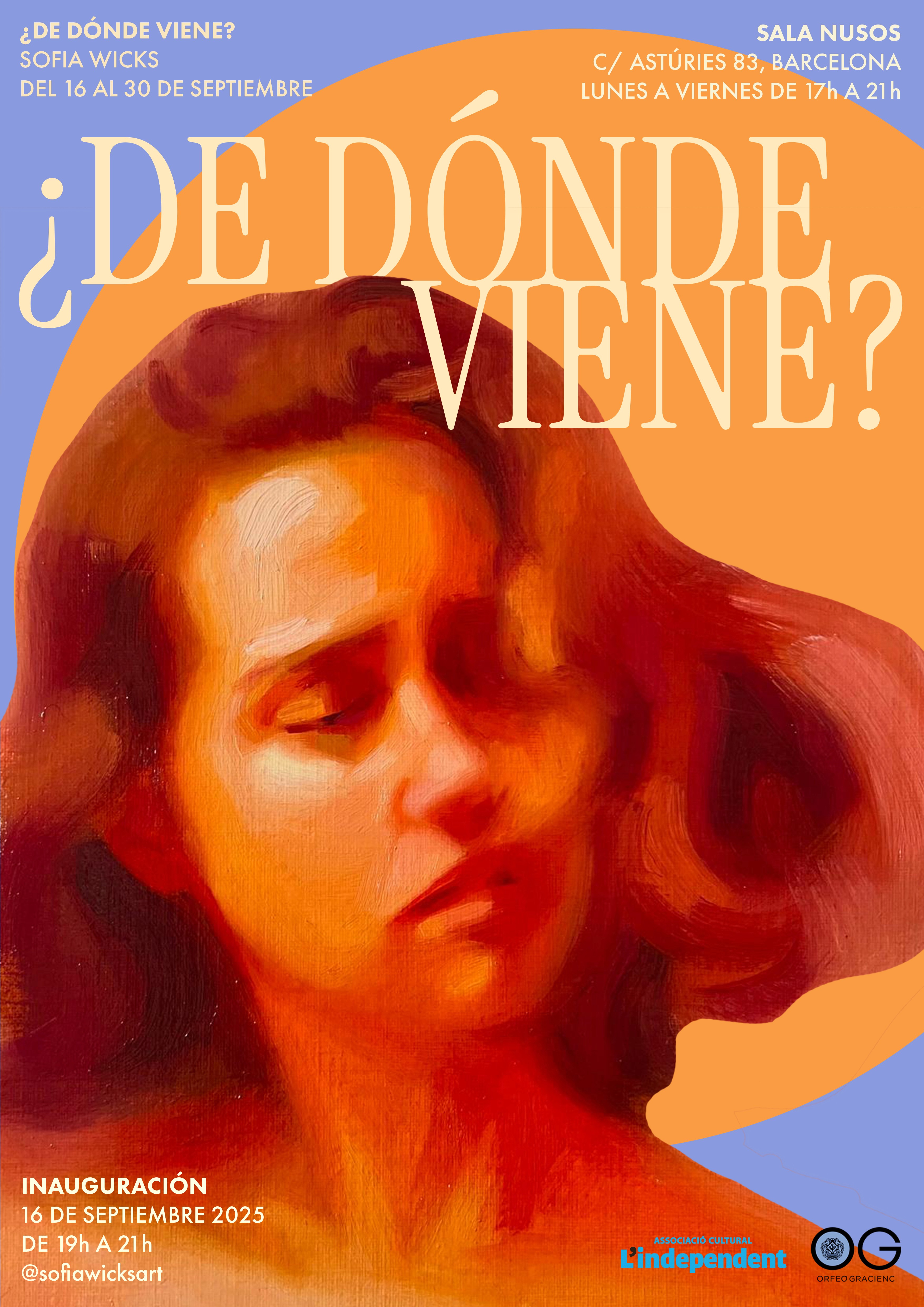 Diseño de identidad gráfica para la muestra "¿De dónde viene?" de la artista Sofía Wicks, expuesta en la galería Sala Nusos. El proyecto consistió en la creación de un sistema visual coherente para la comunicación de la muestra, con una estética que dialoga con el lenguaje pictórico de la artista y con el espacio expositivo.