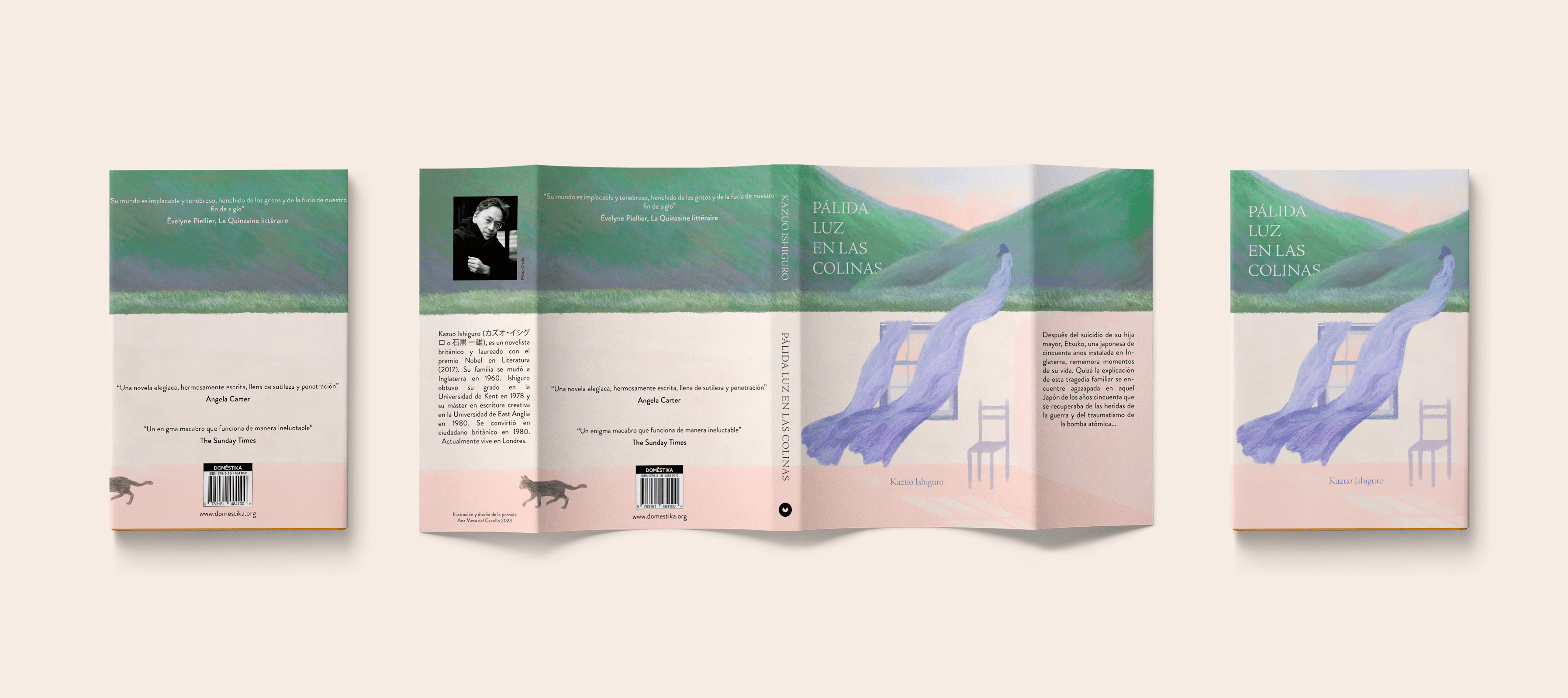 Ilustración digital realizada con Adobe Fresco y diseño editorial de la portada para Pálida luz en las colinas, de Kazuo Ishiguro. Proyecto desarrollado como parte del curso de Owen Gent en Domestika.